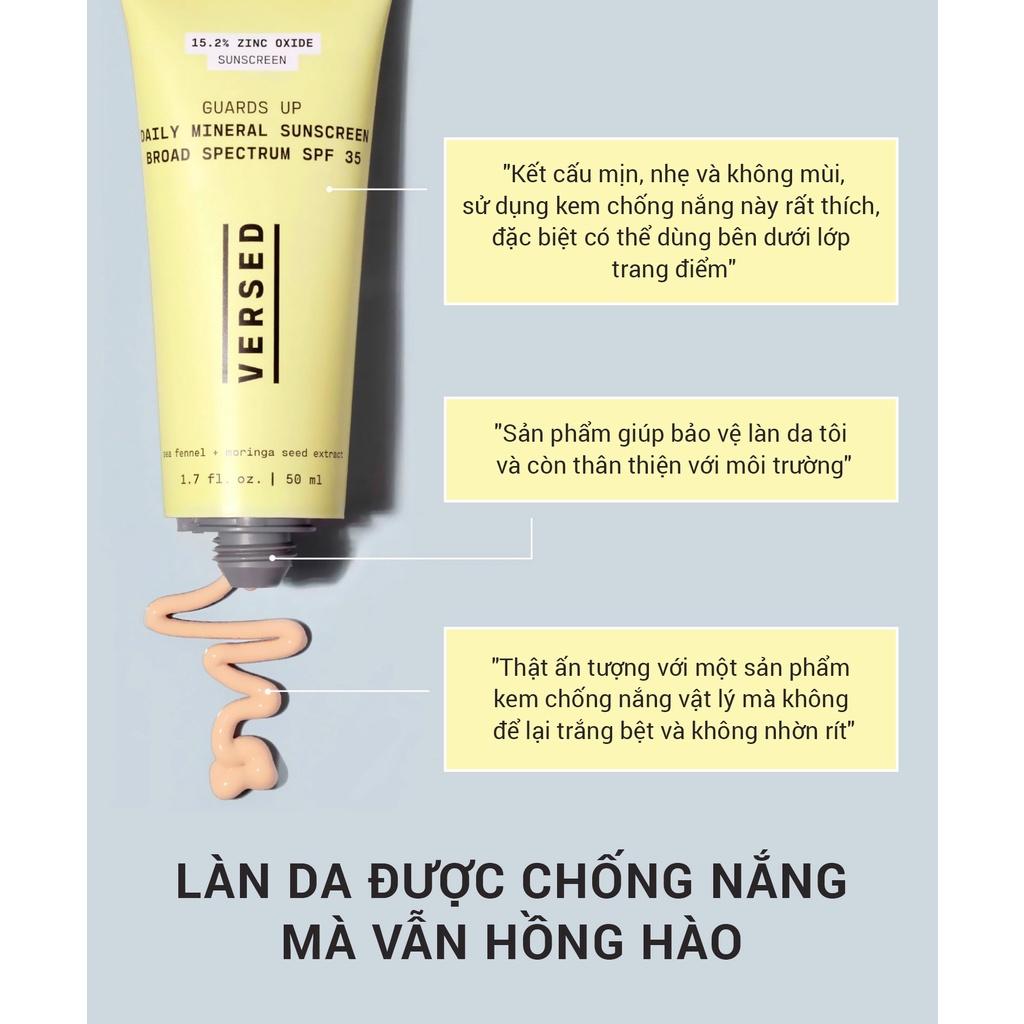 Kem chống nắng vật lý màu tự nhiênquang phổ rộng SPF35 Versed | Guards up Phân loại 3 giá tốt